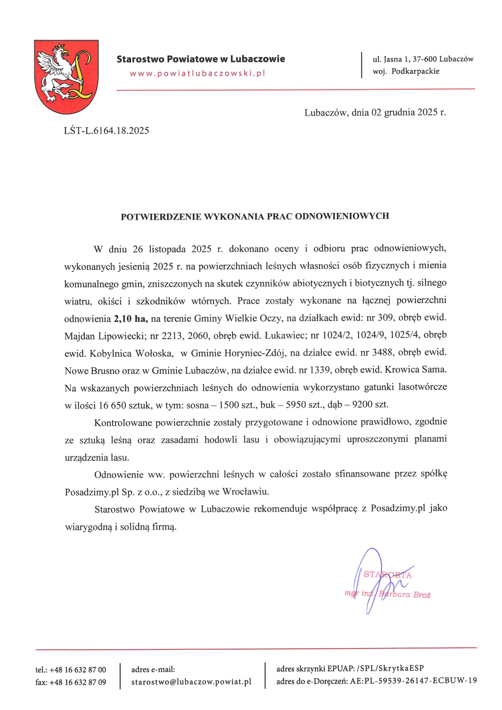 Kolejny raz wracamy na Podkarpacie do powiatu lubaczowskiego, by odnowić tu pozostałe tereny leśne zniszczone przez wichury – już teraz wiemy, że posadzimy tam minimum 16 650 drzew – w tym dęby, sosny i buki. Nasze wspólne drzewa rosnąć będą w gminach Wielkie Oczy i Horyniec-Zdrój.