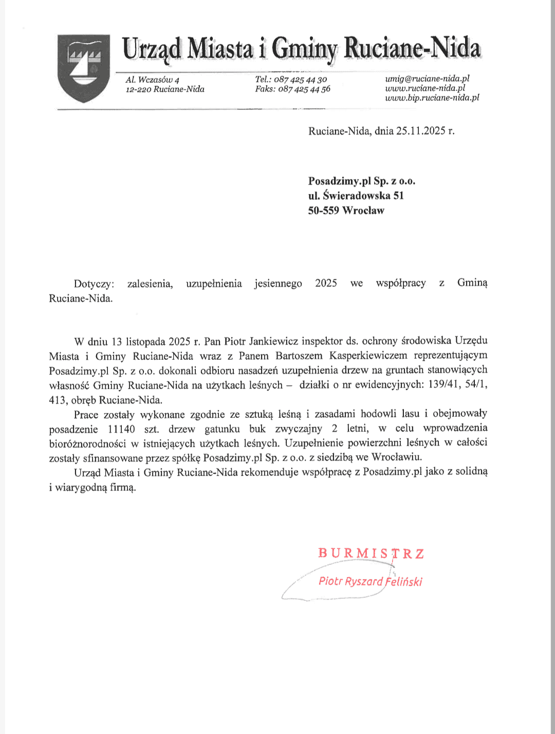 Chcesz dołączyć do grona naszych niezwykłych Partnerów? Przejdź na zieloną stronę biznesu – posadź swoje firmowe drzewa, generuj personalizowane certyfikaty potwierdzające, że Twoja firma robi coś dobrego dla polskich lasów, a już wiosną 2026 Twoje drzewka trafią fizycznie do polskich lasów. Wspólnie zazieleńmy Polskę – drzewo po drzewie. Umów się na bezpłatną konsultację i sprawdź, jak możesz wprowadzić ekologiczne działania do swojej firmy.